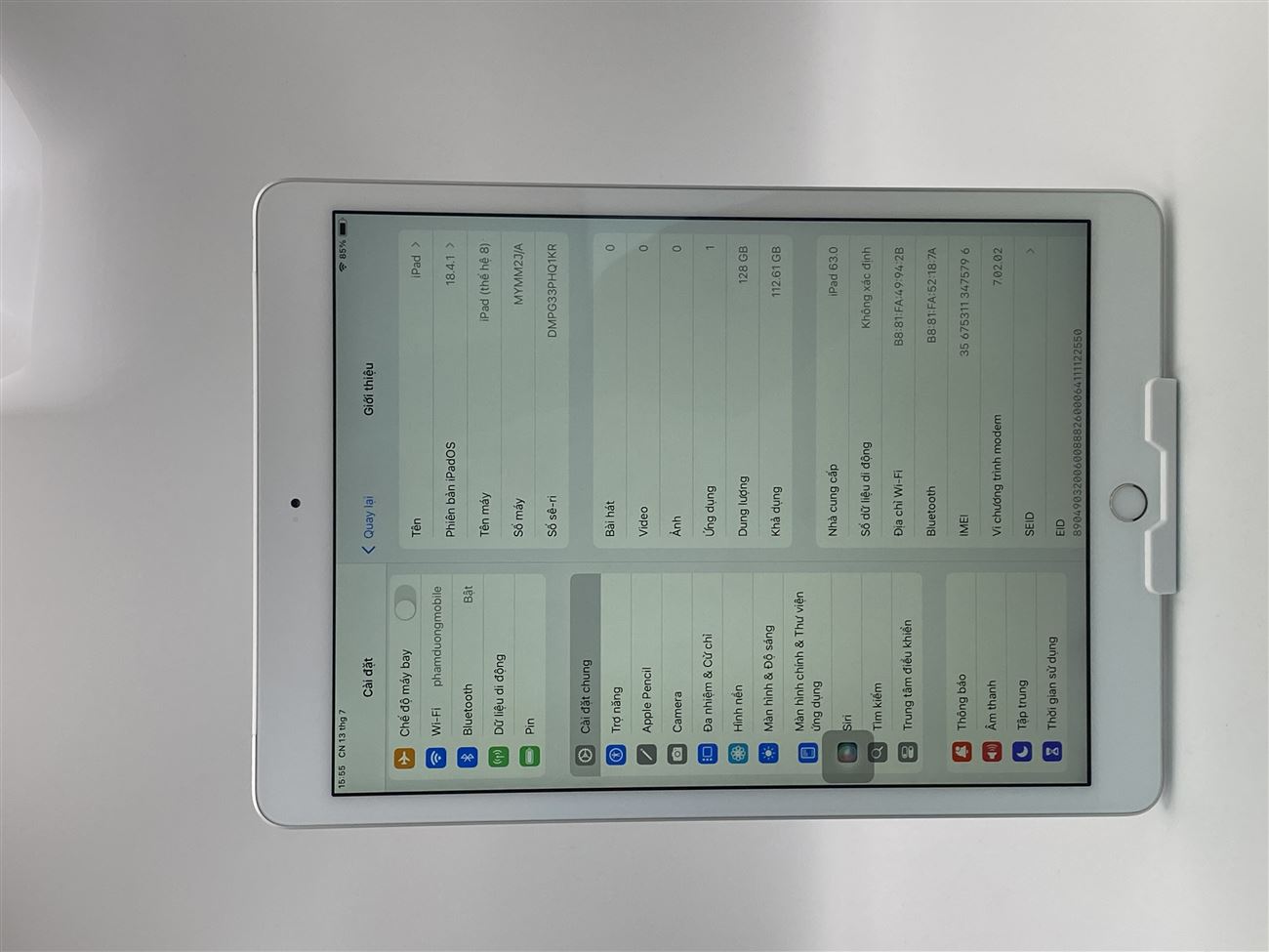 Ipad Gen 8 128G sim và wifi pin 93% màu trắng