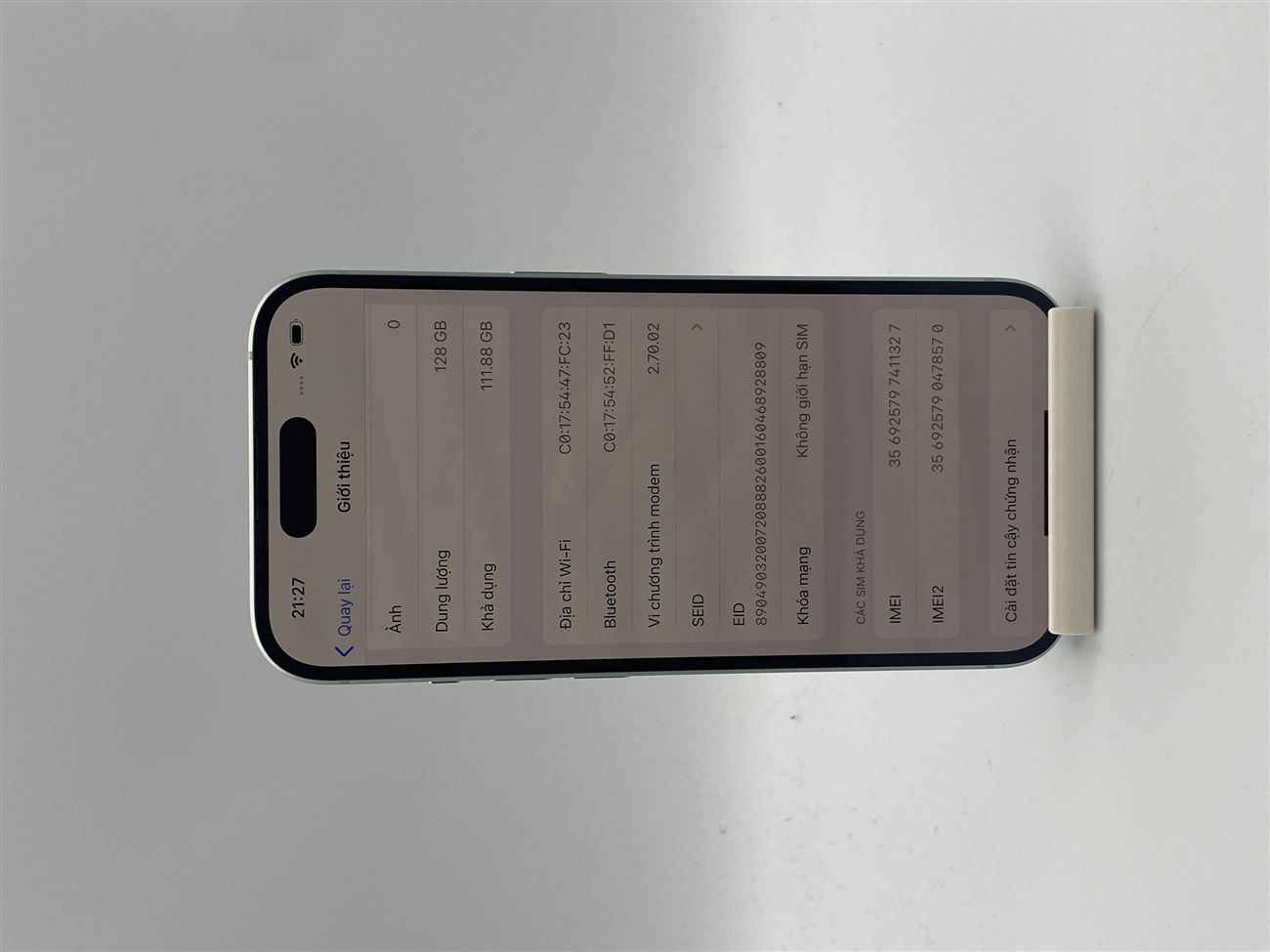 Tình trạng máy 98% pin 86%