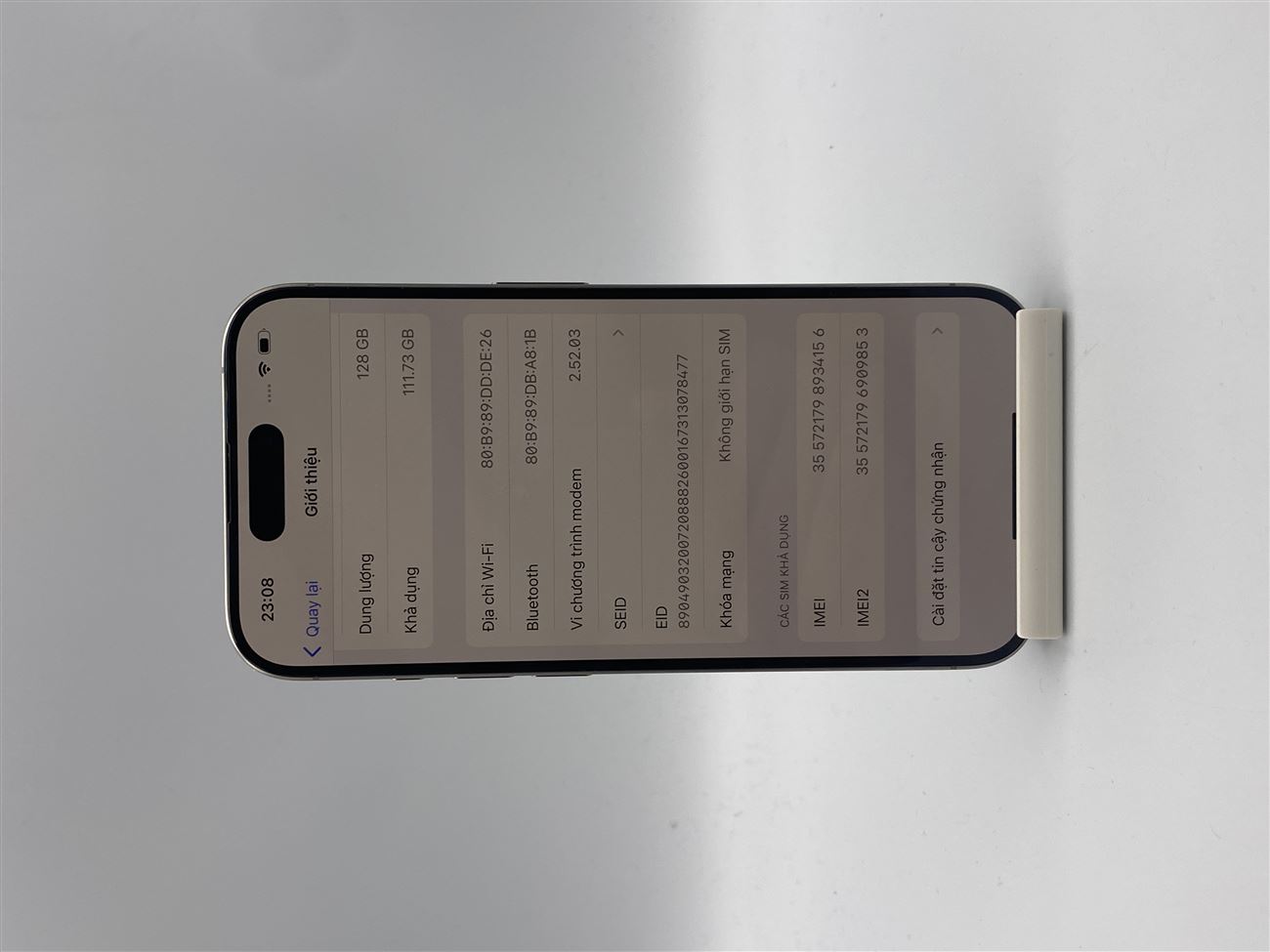 Iphone 15Pro 128G bản quóc tế pin 100% thay mới màu titan