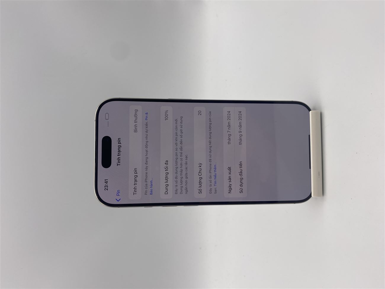 Tình trạng máy 98% pin 100% xạc 20l